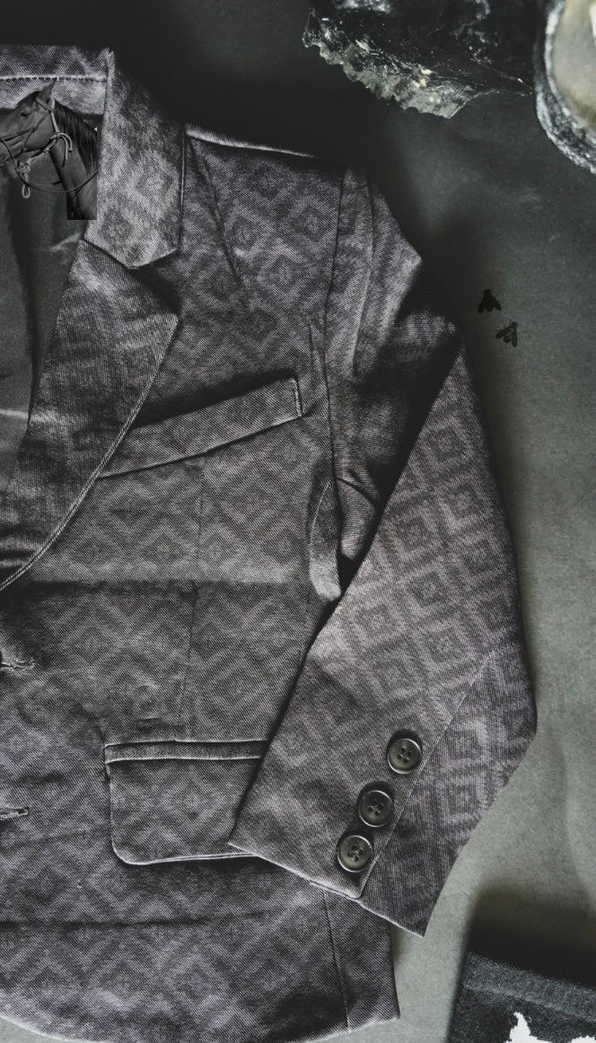 black and grey Aztec pattern.