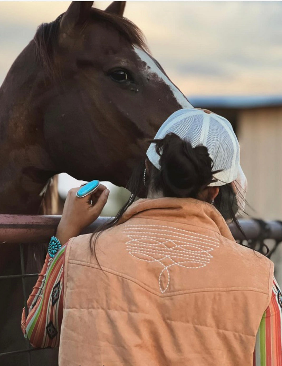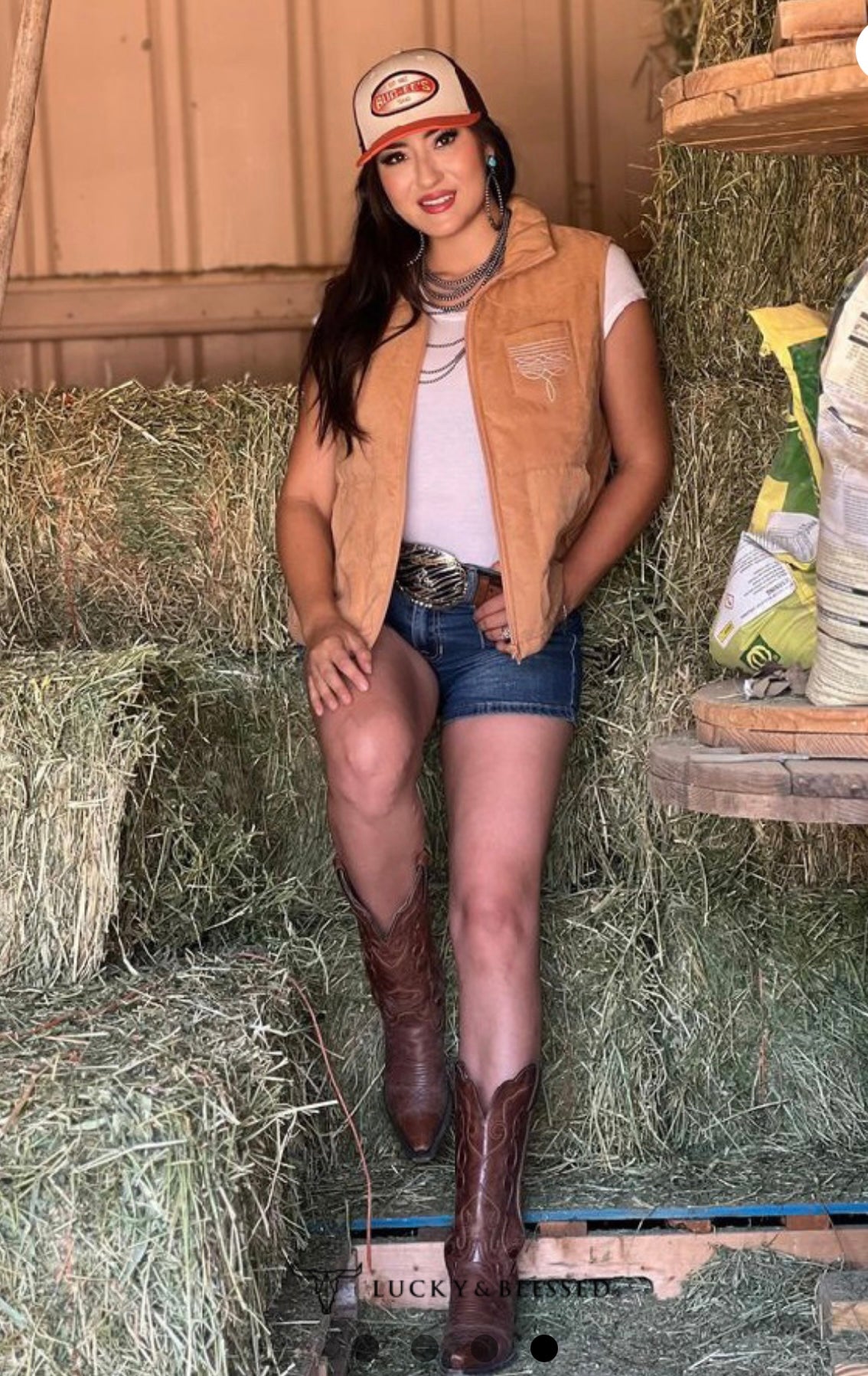 Add a soft Western touch to your boutique lineup with this Camel Boot Stitch Embroidered Vest by Lucky & Blessed. Crafted from a cozy suede-like fabric, this zip-front vest blends feminine charm with Western grit. The intricate boot-stitch embroidery across the chest and back adds a classic rodeo-inspired detail, while the high collar and front pockets make it both stylish and functional. Perfect for layering over denim shirts or graphic tees, this vest delivers warmth, comfort, and cowgirl attitude in every stitch—ideal for Western boutiques looking to offer versatile, best-selling fall and winter layers.
